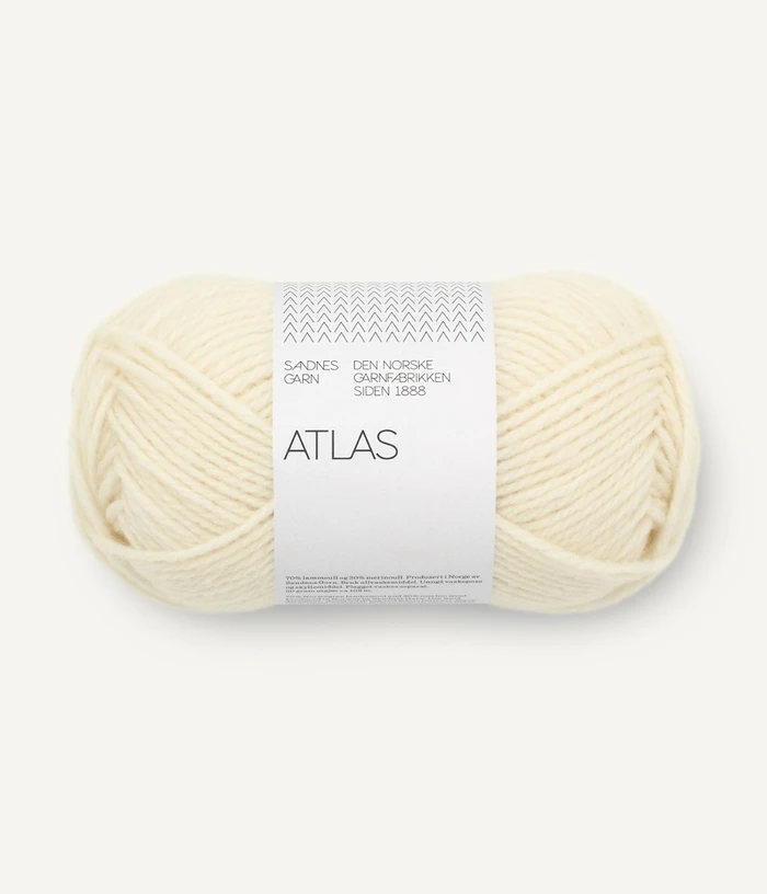 Beskrivelse Atlas er et garn spunnet av 70 prosent norsk ull og 30 prosent merinoull. Resultatet er et varmt, mykt og lett garn med både styrke og karakter. Løpelengde: Ca. 108 meter pr. 50 gram Veiledende pinner: Pinne nr 4 Strikkefasthet: 18 masker = 10 cm Råvare kommer fra: Norge, Argentina |