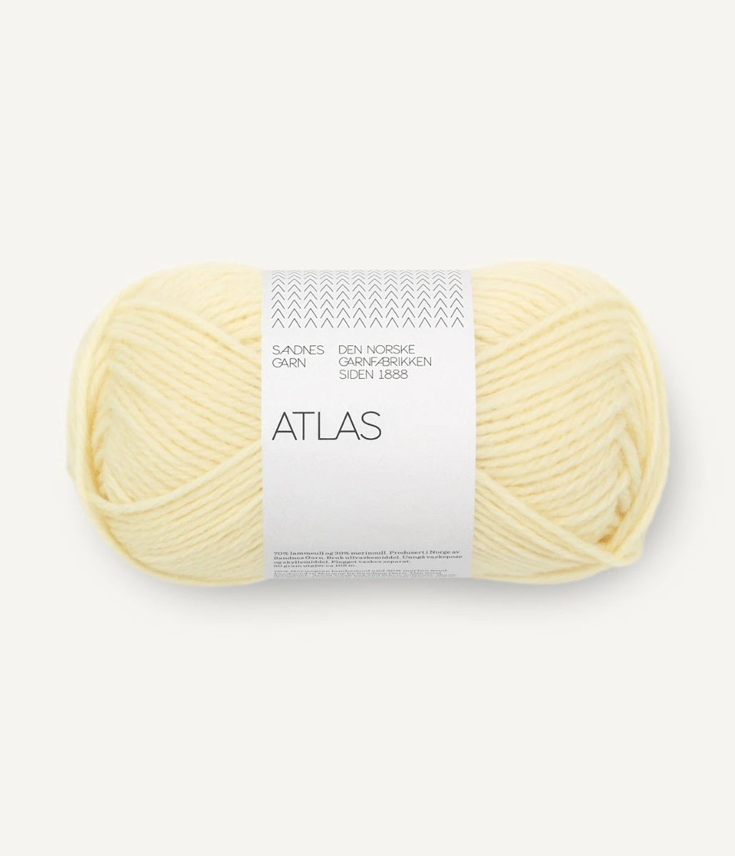 Beskrivelse Atlas er et garn spunnet av 70 prosent norsk ull og 30 prosent merinoull. Resultatet er et varmt, mykt og lett garn med både styrke og karakter. Løpelengde: Ca. 108 meter pr. 50 gram Veiledende pinner: Pinne nr 4 Strikkefasthet: 18 masker = 10 cm Råvare kommer fra: Norge, Argentina |