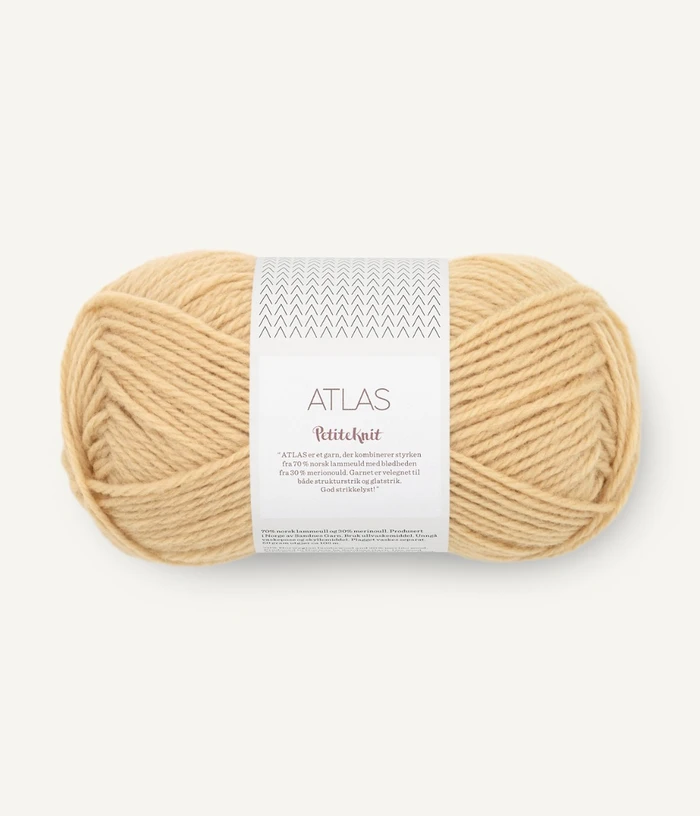 Beskrivelse Atlas er et garn spunnet av 70 prosent norsk ull og 30 prosent merinoull. Resultatet er et varmt, mykt og lett garn med både styrke og karakter. Løpelengde: Ca. 108 meter pr. 50 gram Veiledende pinner: Pinne nr 4 Strikkefasthet: 18 masker = 10 cm Råvare kommer fra: Norge, Argentina |