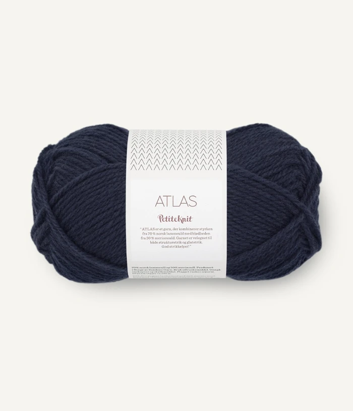 Beskrivelse Atlas er et garn spunnet av 70 prosent norsk ull og 30 prosent merinoull. Resultatet er et varmt, mykt og lett garn med både styrke og karakter. Løpelengde: Ca. 108 meter pr. 50 gram Veiledende pinner: Pinne nr 4 Strikkefasthet: 18 masker = 10 cm Råvare kommer fra: Norge, Argentina |
