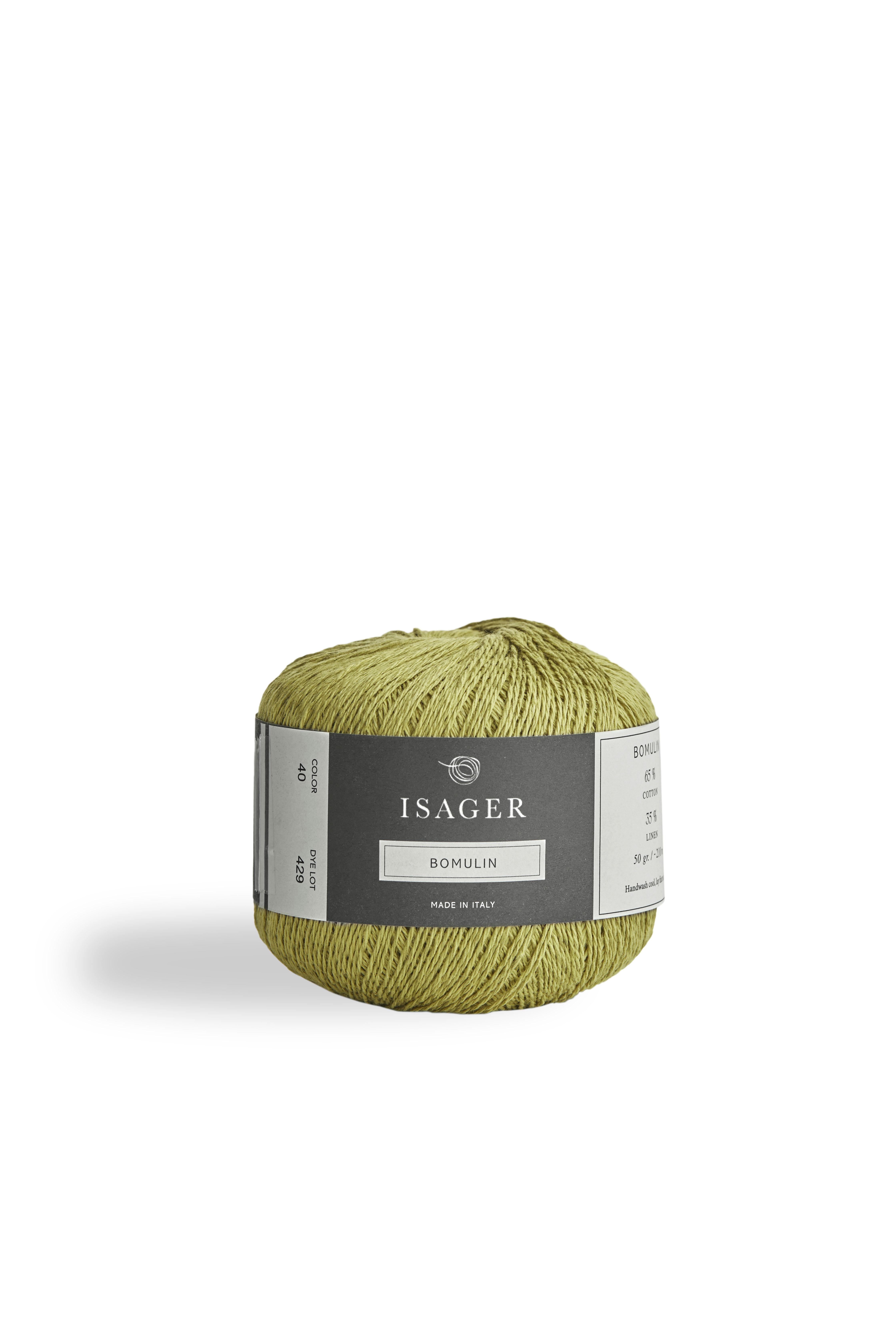 Beskrivelse Isager Bomulin er et tynt "sommergarn". Garnet er fint og lett, og det egner seg godt til lette sommerbluser og barnetøy Garnet er farget og spunnet i Italia Fiberinnhold: 65% bomull og 35% lin Løpelengde. 50 g = 210 m Strikkefasthet: 26 m / 10 cm Anbefalt pinnestørrelse: 3 mm |