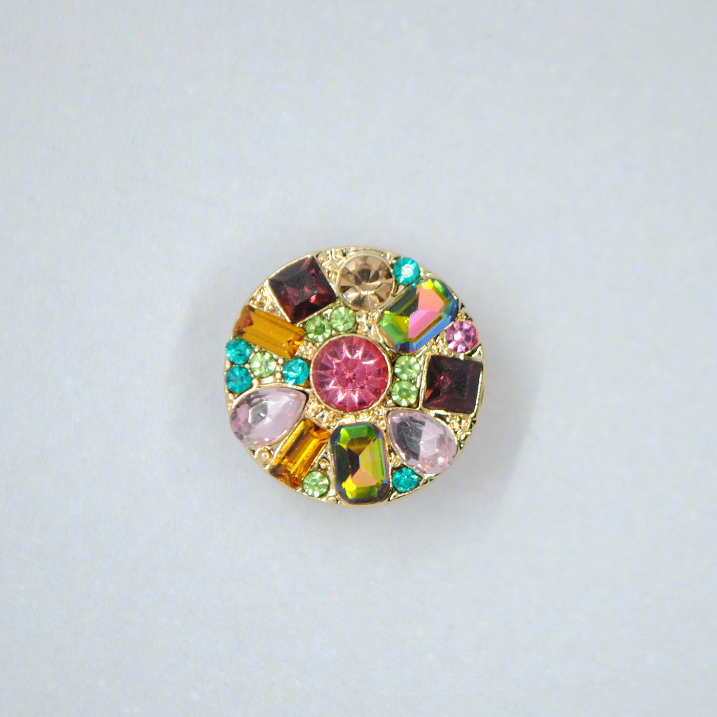 KNAP M/ØJE GULD M/CRYSTAL MULTI