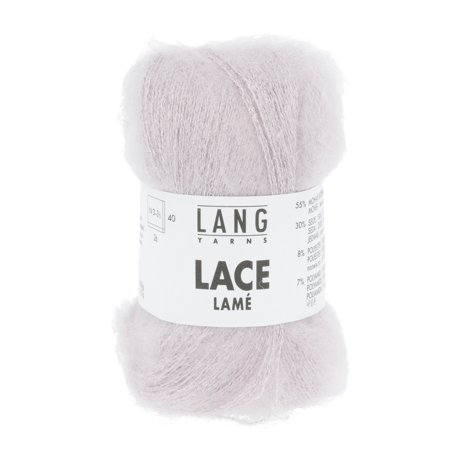 Beskrivelse Lace Lamé fra Lang Yarns er et nydelig mohairgarn med glitter i. Inneholder: 55% Mohair, 30% Silke, 8% Polyester og 7% nylon/polyamid Strikkefasthet: ca 26 masker pr 10 cm Veiledende pinner: 3-3,5 Løpelengde: ca 310m pr 25g |