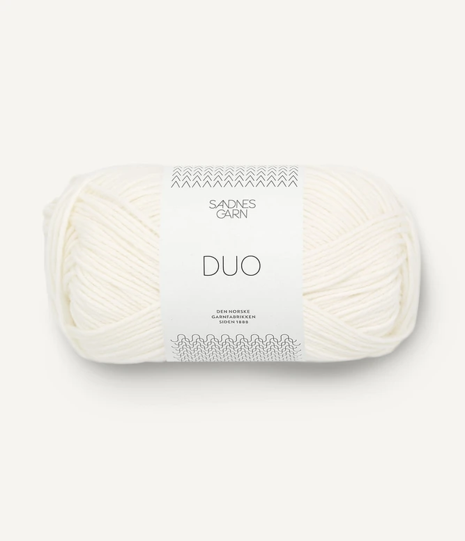 Beskrivelse Duo er et veldig behagelig helårsgarn. Et godt alternativ til dem som synes at ull klør. Ullen gjør at garnet blir lettere, mer elastisk og isolerer bedre enn ren bomull. Bomull klør ikke. Blandingen av merinoull og bomull gjør denne kvaliteten til et lett og mykt garn som isolerer godt. Et godt alternativ til dem som synes at ren ull klør. Vår leverandør har garantert at ullen vi kjøper ikke kommer fra sauer som har blitt utsatt for mulesing. Vasker du i maskin anbefaler vi at alle ullplagg vaskes separat på ullprogram for en mest skånsom behandling. På grunn av merinoullens unike absorberingsevne er det viktig å sentrifugere håndstrikkede plagg godt, før det tørkes flatt, gjerne oppå et håndkle. Bruk aldri vaskepose når du vasker håndstrikkede plagg i ull. Dette skaper friksjon som kan føre til at plagget tover. LØPELENGDE: CA. 115 METER PR. 50 GRAM VEILEDENDE PINNER: PINNE NR 3½ STRIKKEFASTHET: 22 MASKER = 10 CM RÅVARE KOMMER FRA: BOMULL FRA INDIA, MERINOULL FRA AUSTRALIA OG SØR-AMERIKA |