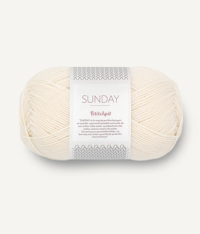 Beskrivelse Sunday er vår tynneste variant av 100 % merinoull og er det perfekte basisgarn: et tynt ikke-superwash behandlet garn som kan strikkes med enkel og dobbel tråd. Eller strikkes sammen med Tynn Silk Mohair. Merinoull er ikke bare isolerende, men leder også fuktighet bort fra kroppen og holder på varmen, selv når den er fuktig, takket være fibrenes struktur. Ullen kan absorbere opp til 30 % av sin egen vekt i vann før det begynner å føles vått. Vår leverandør har garantert at ullen vi kjøper ikke kommer fra sauer som har blitt utsatt for mulesing. Vasker du i maskin anbefaler vi at alle ullplagg vaskes separat på ullprogram for en mest skånsom behandling. På grunn av merinoullens unike absorberingsevne er det viktig å sentrifugere håndstrikkede plagg godt, før det tørkes flatt, gjerne oppå et håndkle. Bruk aldri vaskepose når du vasker håndstrikkede plagg i ull. Dette skaper friksjon som kan føre til at plagget tover. LØPELENGDE: CA. 235 METER PR. 50 GRAM VEILEDENDE PINNER: PINNE NR 3 STRIKKEFASTHET: 28 MASKER = 10 CM RÅVARE KOMMER FRA: URUGUAY |